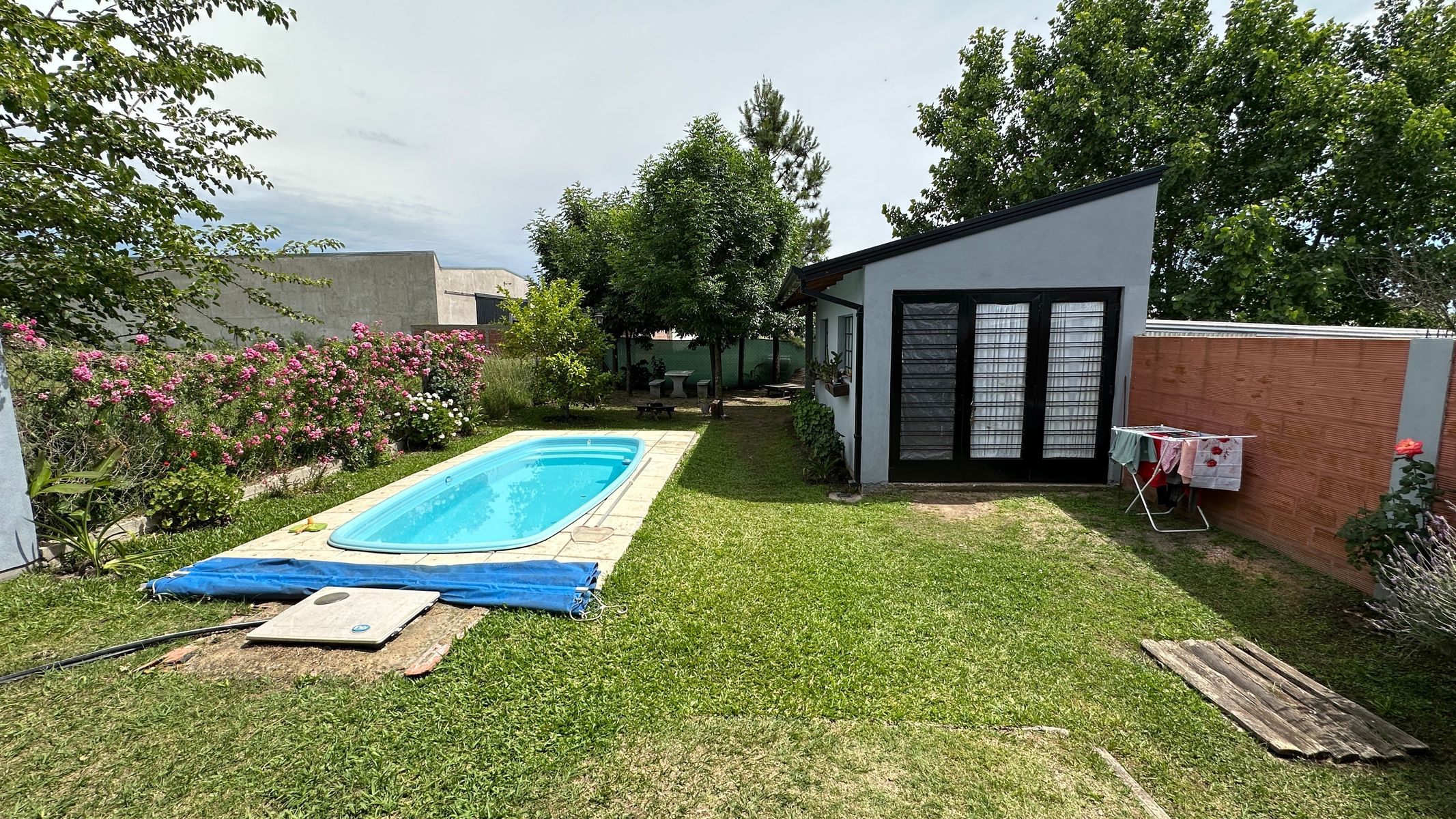 Casa ubicada en San Jose Entre Rios, cuenta con 2 dormitorios, estar cocina comedor, living, un baño, galeria semi cubierta, piscina, parrilla, garaje cerrado y esta plantado todo sobre un terreno de 10x50 con servicios de agua, luz y cloacas.