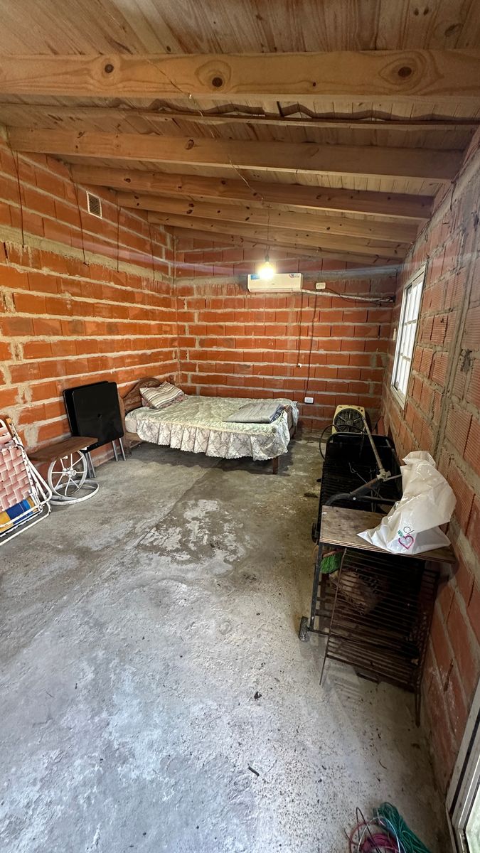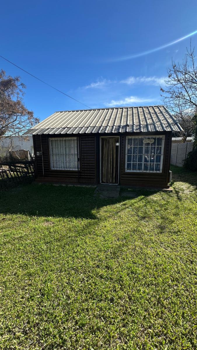 Casa pre fabricada ubicada a solo dos cuadras del ingreso al Barrio, cuenta con dos dormitorios, estar cocina comedor, baño completo y quincho ubicado sobre el fondo del terreno. Dispone de un lote con 10 metros de frente por 30 metros de fondo y servicios de agua, luz y cloacas